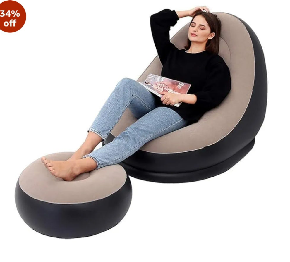 - Versatile Design: This multipurpose lazy inflatable sofa includes a reclining chair feature with a footrest stool, allowing you to find your ideal lounging position. The integrated footstool serves as extra seating, provides leg support, and acts as a convenient surface for resting other essentials.